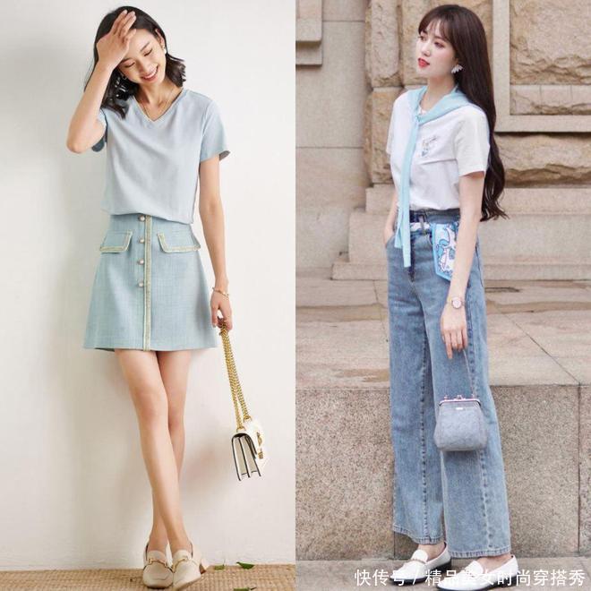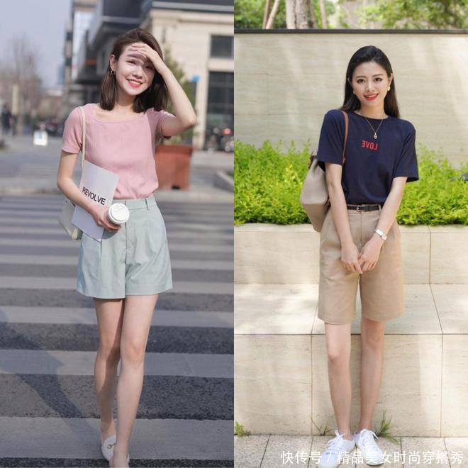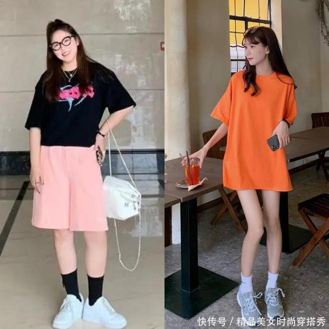 小个子和高个子的女生在挑选T恤时也是有所区别的,对于小个子来说,由于天生没有身高的优势,因此只能通过穿搭来尽可能的显高,优化身材比例。
